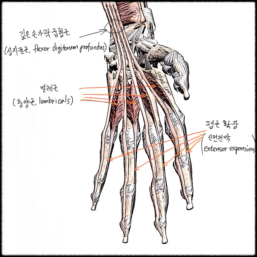 3. 벌레근 (lumbricals)