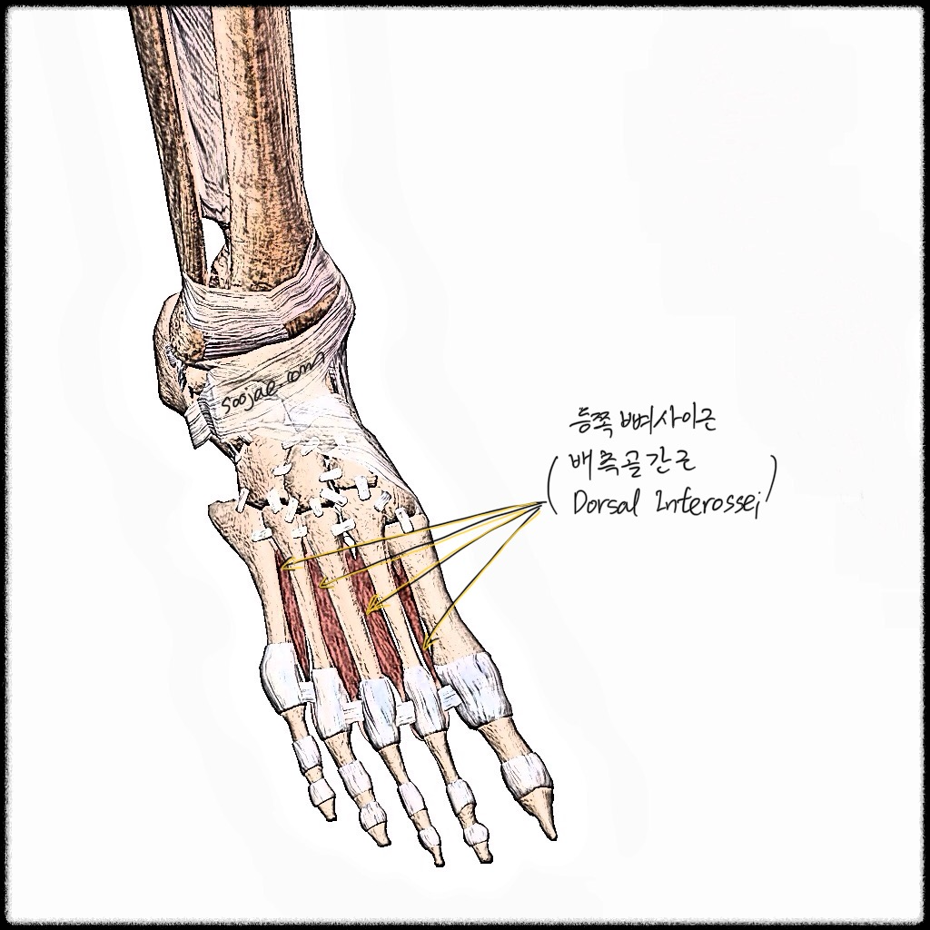 - 나머지 세 개의 DI는 2, 3, 4번째 발가락의 외측면에 정지한다.12