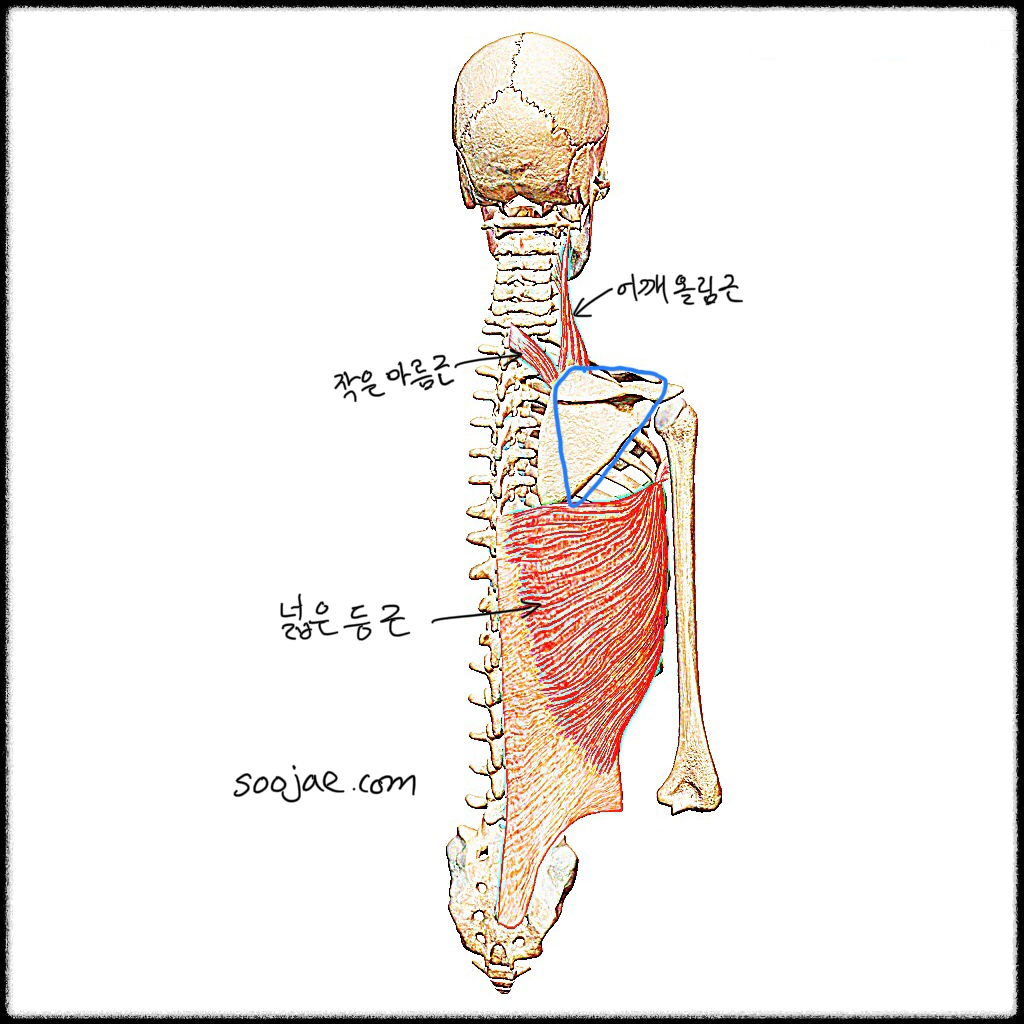 마치며, 여기서 넓은등근의 모든 것을 말할 수는 없지만, 가장 중요한 특징인 어깨뼈의 아래돌림에 관여하면서 목에 어떻게 영향을 주는지 꼭 알았으면 좋겠다.