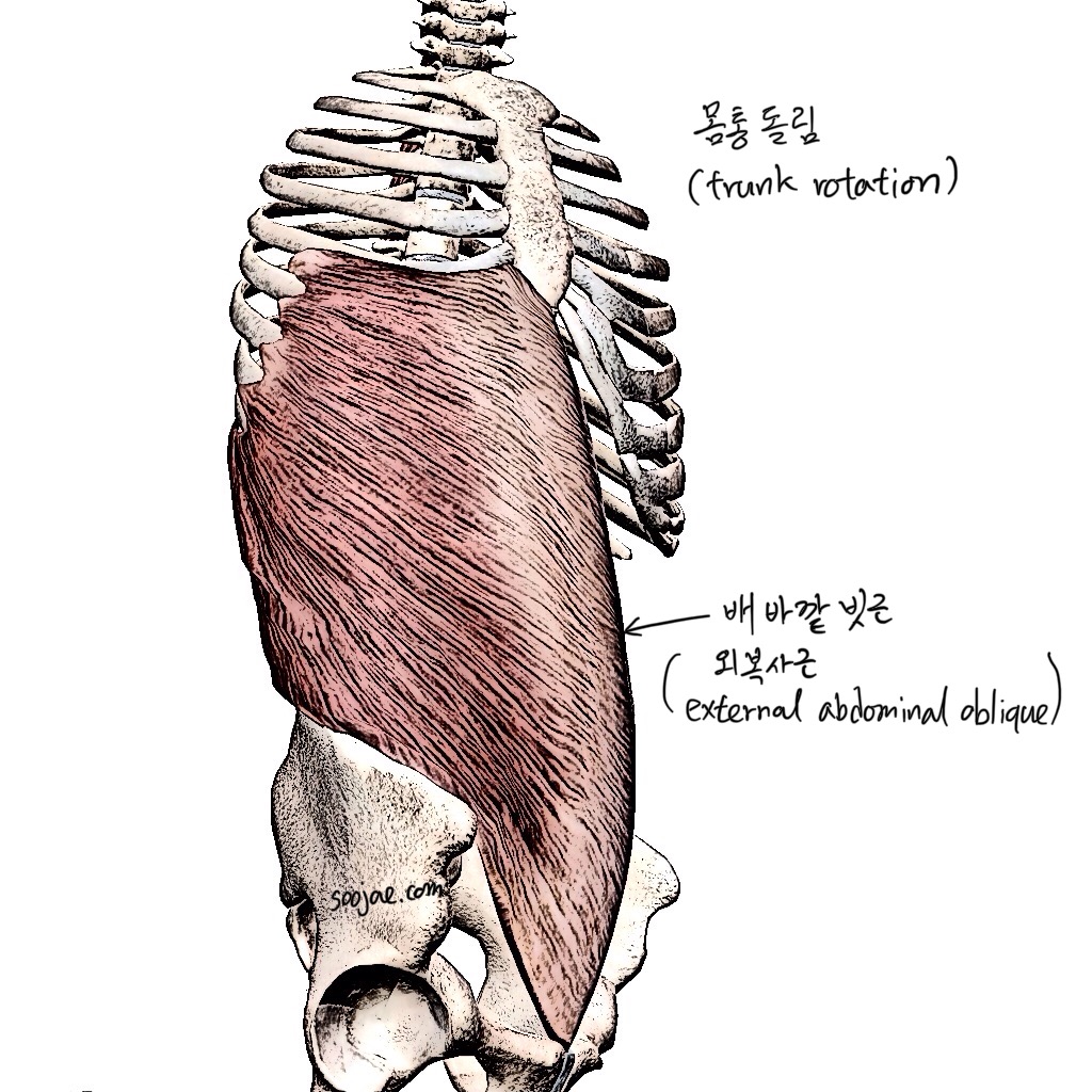 배가로근(복횡근, Transverse Abdominis)배가로근은 코어(core) 근육 중 하나로, 허리 안정화에 중요한 역할을 한다. 학부 과정에서는 배가로근의 수축 시 아랫배가 들어가도록 해야 한다고 배웠지만, 최근 연구에서는 배가 나오는 방식이 더 활성화된다고도 한다. 이에 대해 다양한 의견이 존재한다.1. 해부학적 특징과 기능배가로근은 엉덩뼈능선(장골능선), 6~12번째 갈비연골(늑연골), 그리고 샅고랑인대(서혜인대)에서 시작됩니다. 이 근육은 백색선(linea alba)과 배곧은근집(복직근초, rectus sheath)에 붙는다.배가로근의 주요 기능은 배안압력을 증가시키고, 등허리근막의 장력을 높여 허리 안정성을 강화한다.2. 통증 부위와 증상압통점은 옆구리와 앞쪽 사이 대각선 부위에 위치하며,..