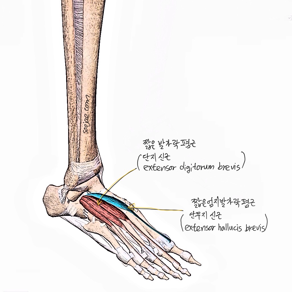 발등에 느껴지는 욱신거리는 통증, 흔한 증상이라 대수롭지 않게 넘길 수 있다. 혹시 과도한 활동이나 신발 문제로만 생각했다면, 오늘의 글에 주목해 보자. 발의 미세한 기능과 안정성을 담당하는 두 근육, 짧은발가락폄근(단지신근, Extensor Digitorum Brevis, EDB)과 짧은엄지발가락폄근(단무지신근, Extensor Hallucis Brevis, EHB)이 바로 그 통증의 진짜 원인일 수 있다.이 두 근육은 겉으로 잘 드러나지 않지만, 걷고 뛸 때 발의 역동적인 안정성을 제공하는 핵심적인 역할을 한다. 이들의 기능에 문제가 생기면 족저근막염, 발가락 신경종, 중족골통 등 다른 질환과 비슷하게 느껴져 오진으로 이어지기 쉽다. 1. 해부학적 특징 짧은발가락폄근은 발등에 유일하게 존재하는 내재..